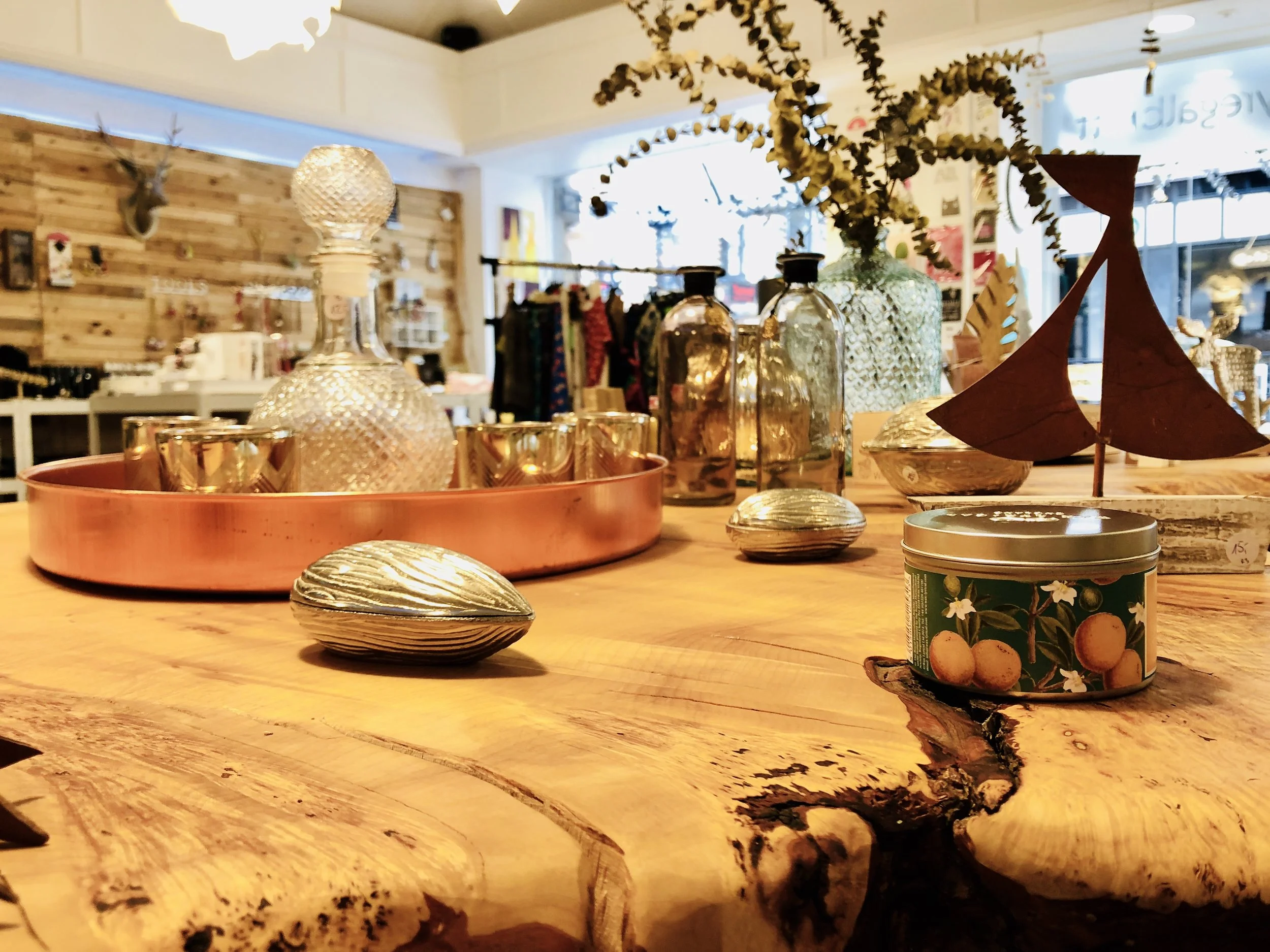 Das Konzept ist schnell erklärt: Es gibt verschiedene Regal- und Sonderflächen in unterschiedlichen Preiskategorien, die jeder mieten kann, um die selbstgemachte Ware zu verkaufen oder auch eine Dienstleistung anzubieten. Das Sortiment wechselt ständig, darunter vor allem Krimskrams, Geschenkideen, Möbel, Delikatessen, Klamotten und ganz viel Erstaunliches mehr. Ab und zu kommen Mieter mit ziemlich skurrilen Sachen vorbei. Moritz erzählt, in der Anfangszeit des Ladens wollte jemand für 600 Euro seine selbstgebaute Dampfmaschine verkaufen. Losgeworden ist er sie – nur wenig überraschend – allerdings nicht.